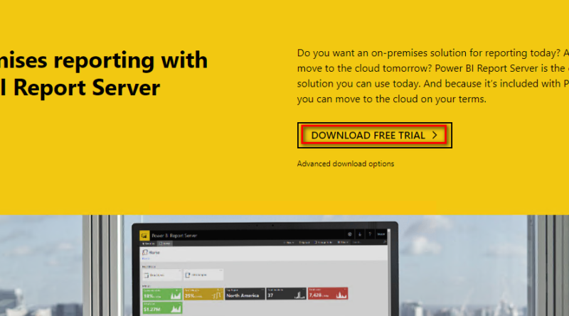 Bước 1: truy cập vào trang powerbi.microsoft.com, tại tab Products -> chọn sản phẩm Power Bi Report Server và tiến hành chọn download như hình sau: