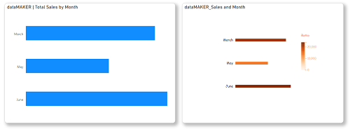 Với những cập nhật theo thời gian, Stacked bar chart hiện đã cho chúng ta tùy biến khá nhiều, từ màu sắc, font chữ, kích thước đến những tính năng được mở rộng về sau: đảo trục Y, đảo trục X,.. Việc tạo Stacked bar chart cũng khá đơn giản, VD sau dataMAKER tạo 1 chart thể hiện Tổng doanh thu theo Tháng: