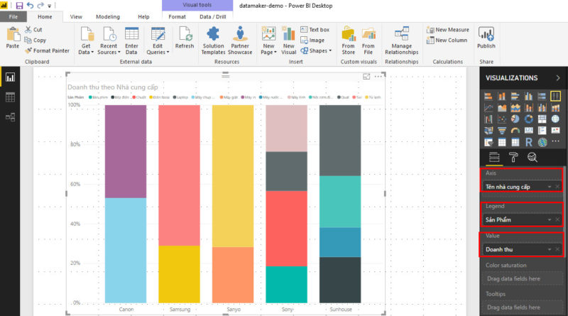 Hướng dẫn sử dụng “100% Stacked column chart”